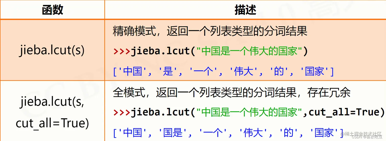 . 精确模式:把文本精确的切分开,不存在冗余单词