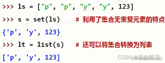 集合元素之间无序,每个元素唯一,不存在相同元素