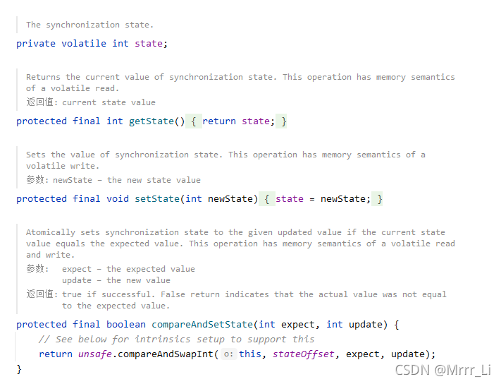 - compareAndSetState - cas 机制设置 state 状态