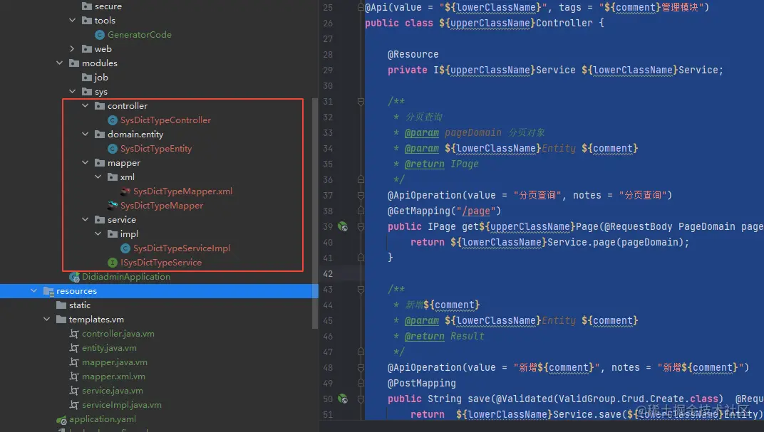 以上生成的代码都是基于MybatisPlus代码生成默认模板去生成的。适合绝大多数场景。我们也可以根据自己的模板文件去生成代码的。