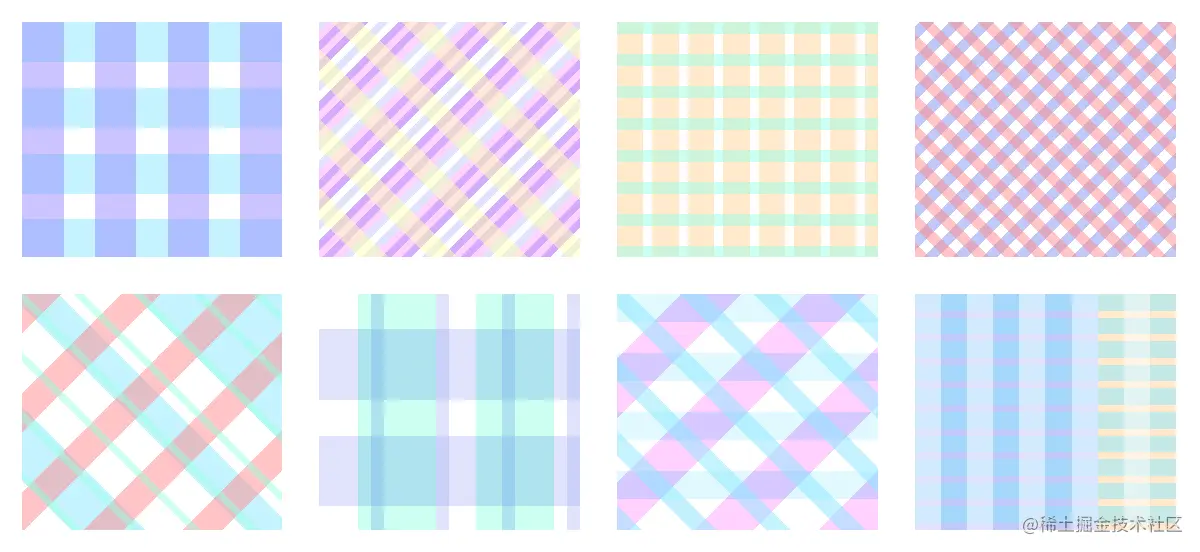 看到上面各种各样的格子,你会用什么方式实现呢?由于格子的大小间隙及方向多变,不能每次都创建很多的元素实现,那么就没有发挥到CSS的强大实力了,以上每个格子风格都只需要一个元素承载,剩下的交给CSS吧。