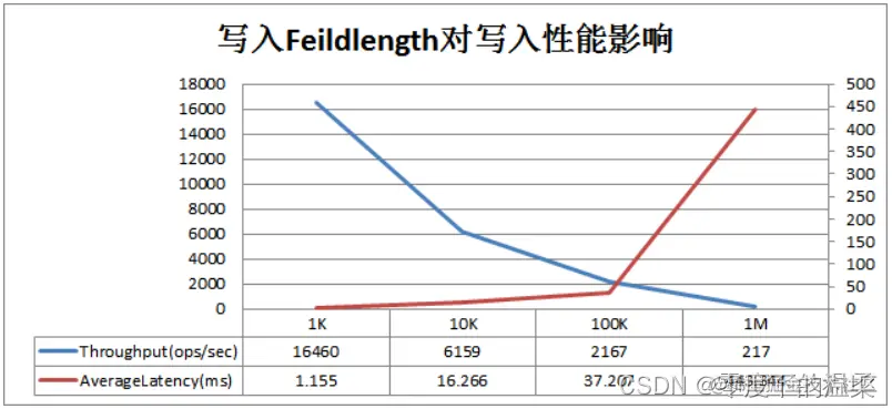 KeyValue大小对写入性能的影响巨大,一旦遇到写入性能比较差的情况,需要考虑是否由于写入KeyValue数据太大导致。KeyValue大小对写入性能影响曲线图如下: