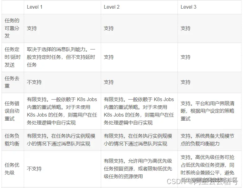 根据前述对异步任务处理系统的架构和功能的分析,我们将异步任务处理系统的能力分为以下三层: