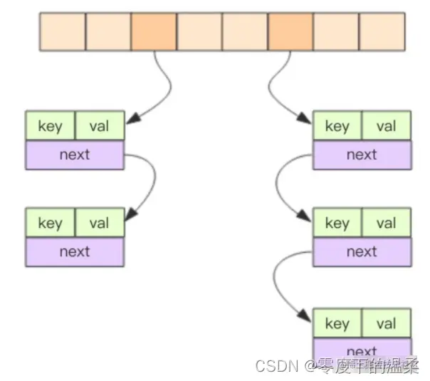 Redis Hash通过分桶的方式解决 hash 冲突。它是无序字典。内部实现结构是同样的数组 + 链表二维结构。第一维 hash 的数组位置碰撞时,就会将碰撞的元素使用链表串接起来。第一维是数组,第二维是链表。数组中存储的是第二维链表的第一个元素的指针。