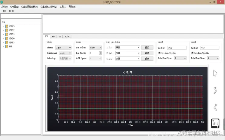 点击心电图右侧开始按钮,显示心电图波形: