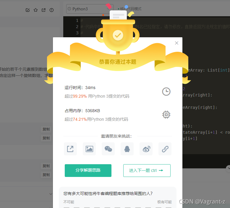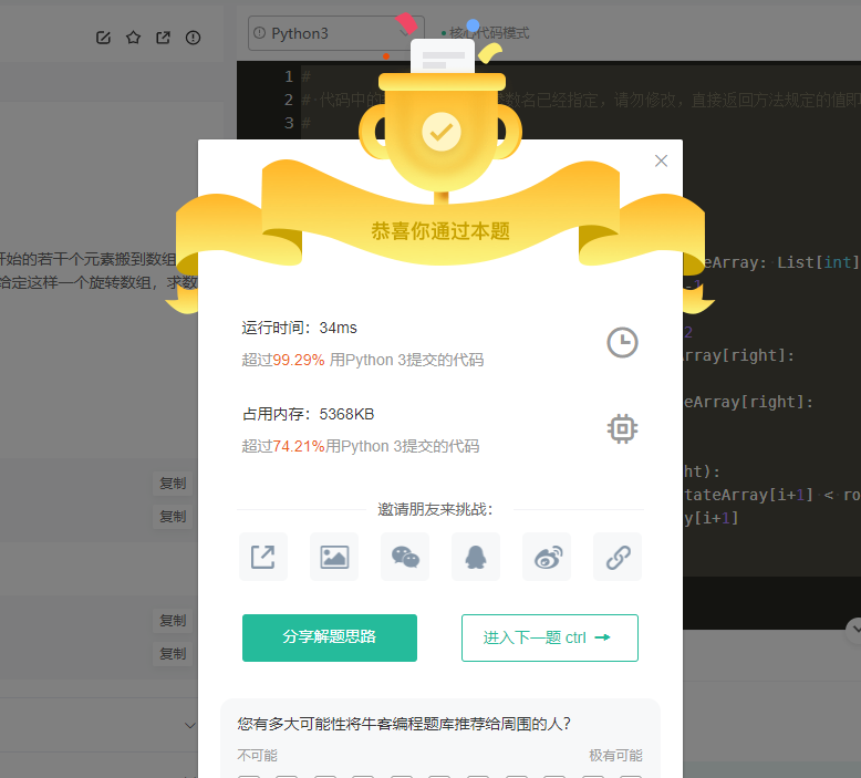思路1:内置函数min,简洁(一般不会允许这么搞) 思路2:二分查找