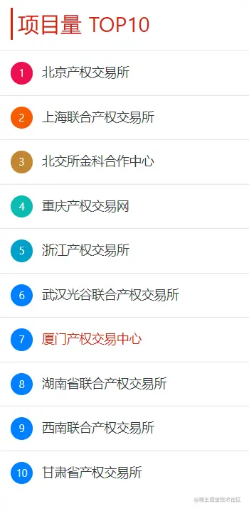本周交易机构新增披露项目量排名TOP10有:北京产权交易所、上海联合产权交易所、北交所金科合作中心、重庆产权交易网、浙江产权交易所、武汉光谷联合产权交易所、厦门产权交易中心、湖南省联合产权交易所、西南联合产权交易所、甘肃省产权交易所