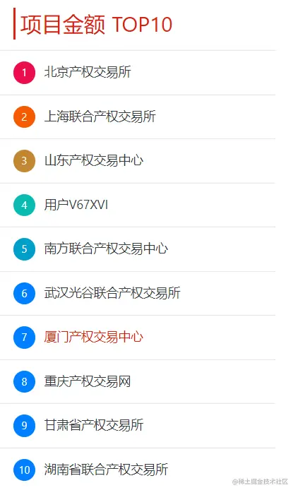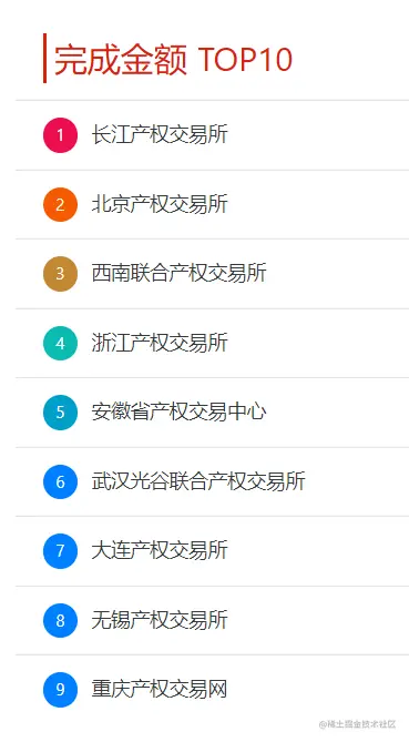 本周交易机构项目完成金额TOP10有:长江产权交易所、北京产权交易所、西南联合产权交易所、浙江产权交易所、安徽省产权交易中心、武汉光谷联合产权交易所、大连产权交易所、无锡产权交易所、重庆产权交易网