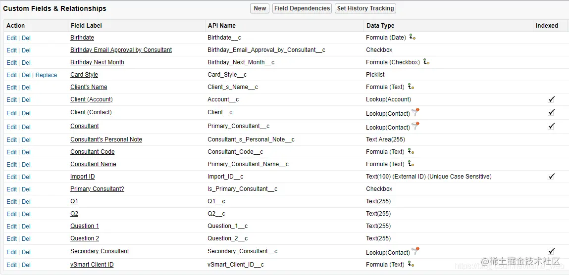 本次案例,我们需要使用到的字段有:Primary_Consultant__c(Lookup Contact),Account__c(Lookup Account),Is_Primary_Consultant__c,Import_ID__c(外键); -