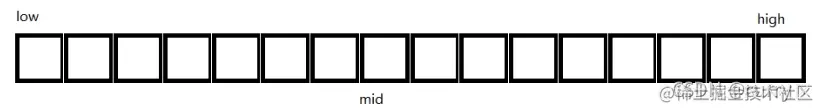 由low和high取得中间的mid索引,由最初的[low,high]区间得到[low,mid][mid+1,high]两个区间,