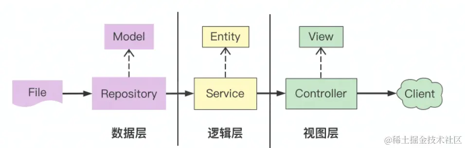 数据层面向逻辑层,对service层透明,屏蔽下游数据差异,也就是不管下游是文件,还是教据库套基微服务等,对service层的接口模型是不变的。\