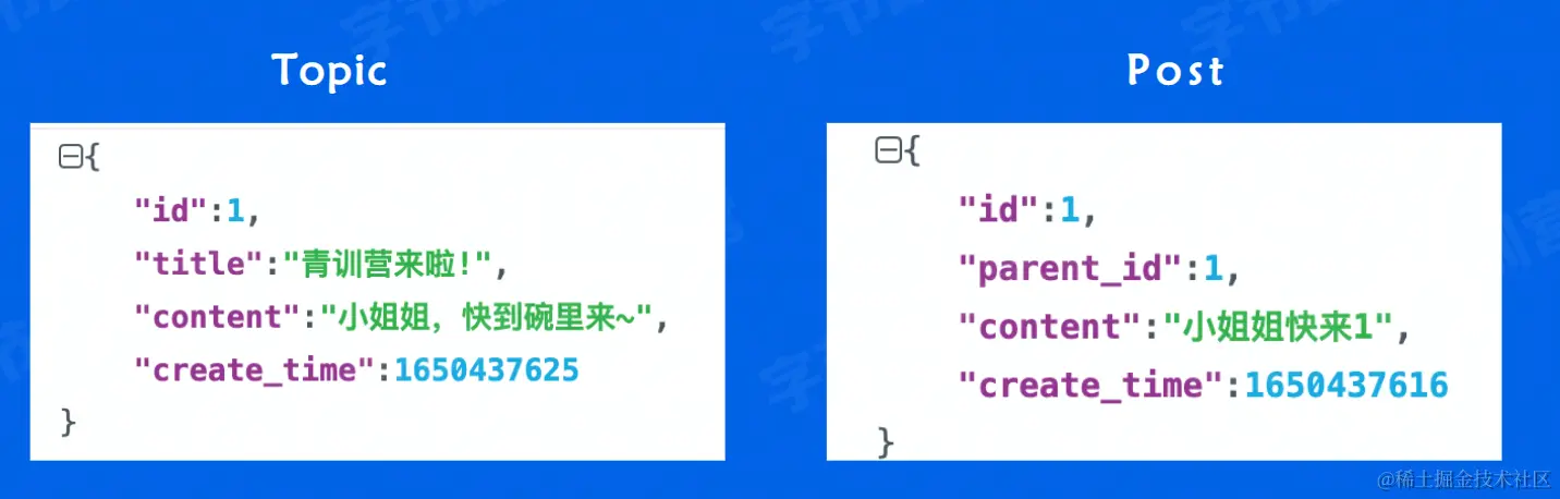 - 话题和回帖实际上就是两个JSON