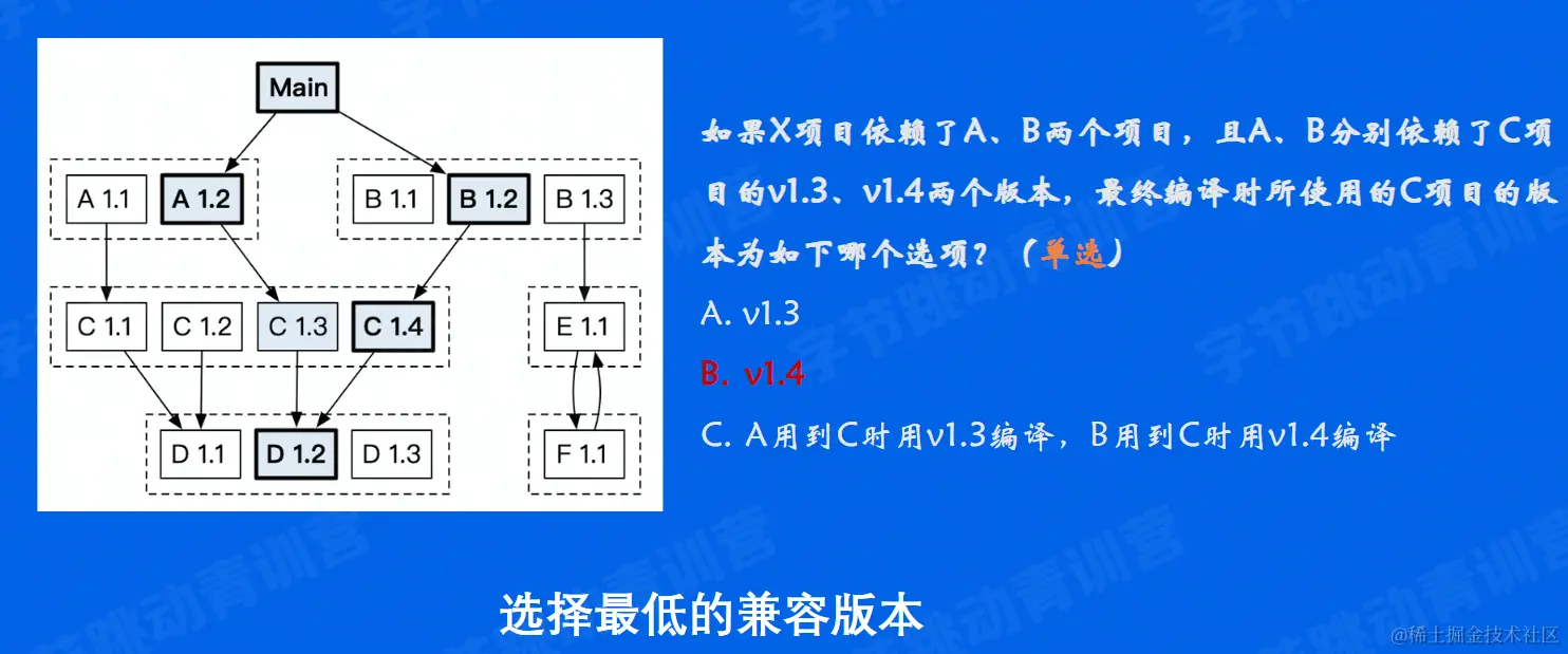 - C1.3 C1.4都是属于1系列版本的,前后兼容,go选择能让A B都满足的最低兼容版本,即C1.4\
