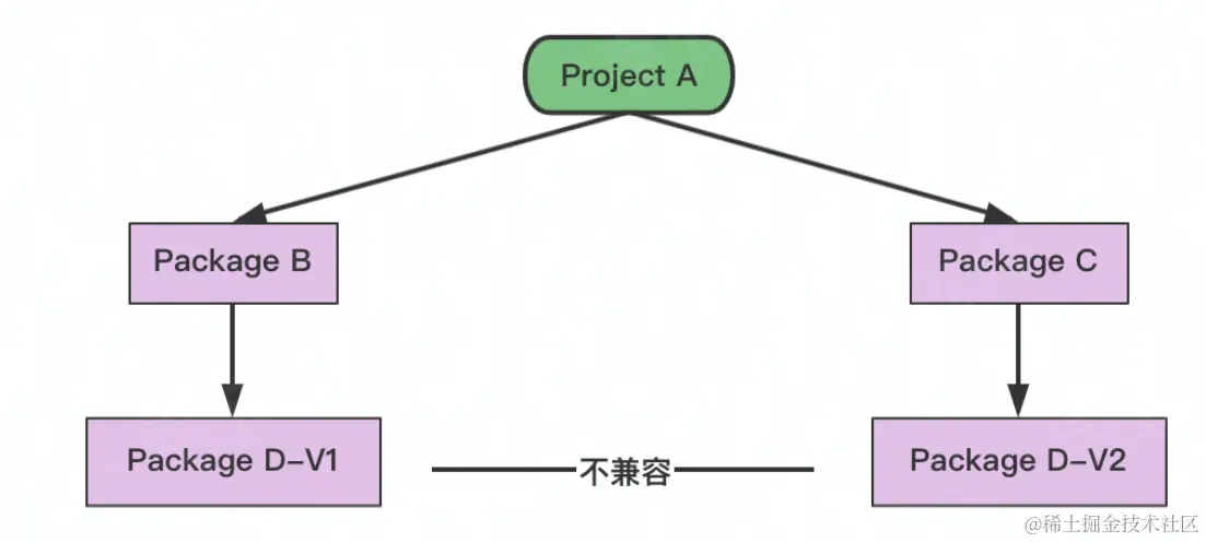 场景:A和B依赖于某一package的不同版本
