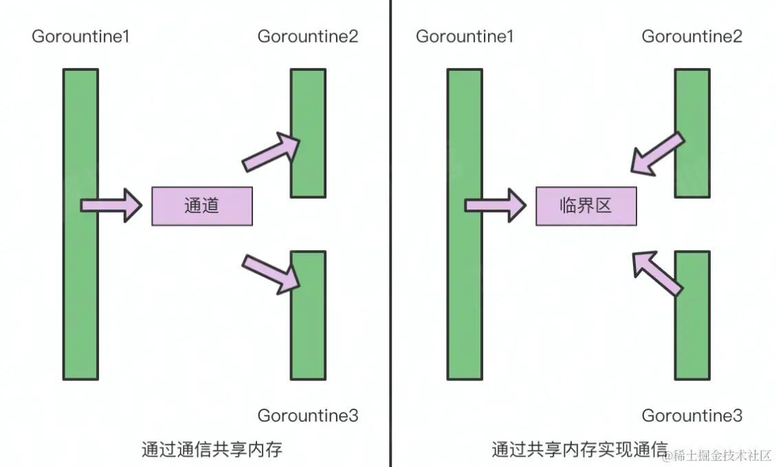 提倡通过通信共享内存,而不是通过共享内存实现通信