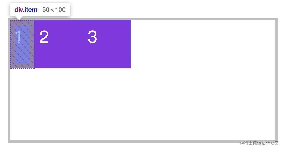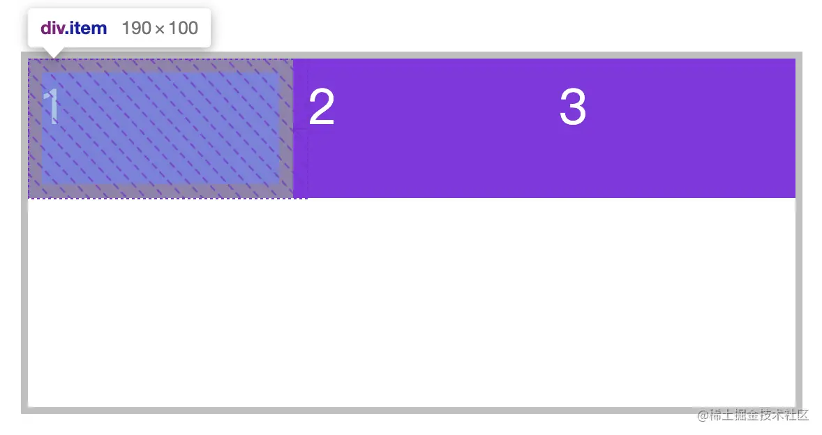 表示如果父容器宽度还有剩余,则第一个元素占 1 份,第二个元素占 2 份,第三个元素占 2 份。计算如下:
