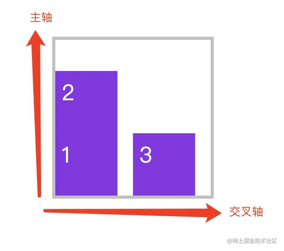 当使用 flex 布局时,首先想到的是两根轴线 — 主轴和交叉轴。主轴由 flex-direction 定义,另一根轴垂直于它。我们使用 flexbox 的所有属性都跟这两根轴线有关, 所以有必要在一开始首先理解它。