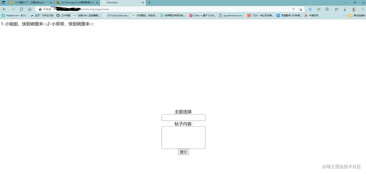 小记一波:这次作业花费了我不少精力,主要是在go mod的使用上,乱七八糟的go get,一通折腾之后总算会用了,再就是最后的这个细节比较重要,另外自己动手浅写了一下前端,端口号搞错了post不了表单,仔细想了一下,服务端都没打印出来请求POST请求,即使不提供服务也应该有反应才对。