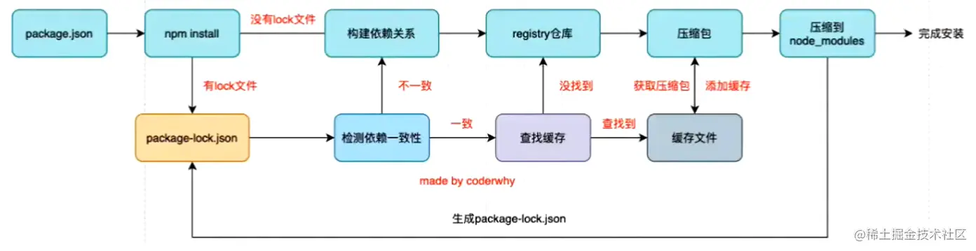 npm install命令时会先检测有没有package-lock.json文件:
