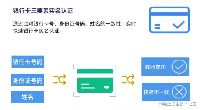 根据录入要素的不同可分为三种要素的验证:分别有二、三、四要素验证,银行卡二要素验证就是指“名字+银行卡号”。