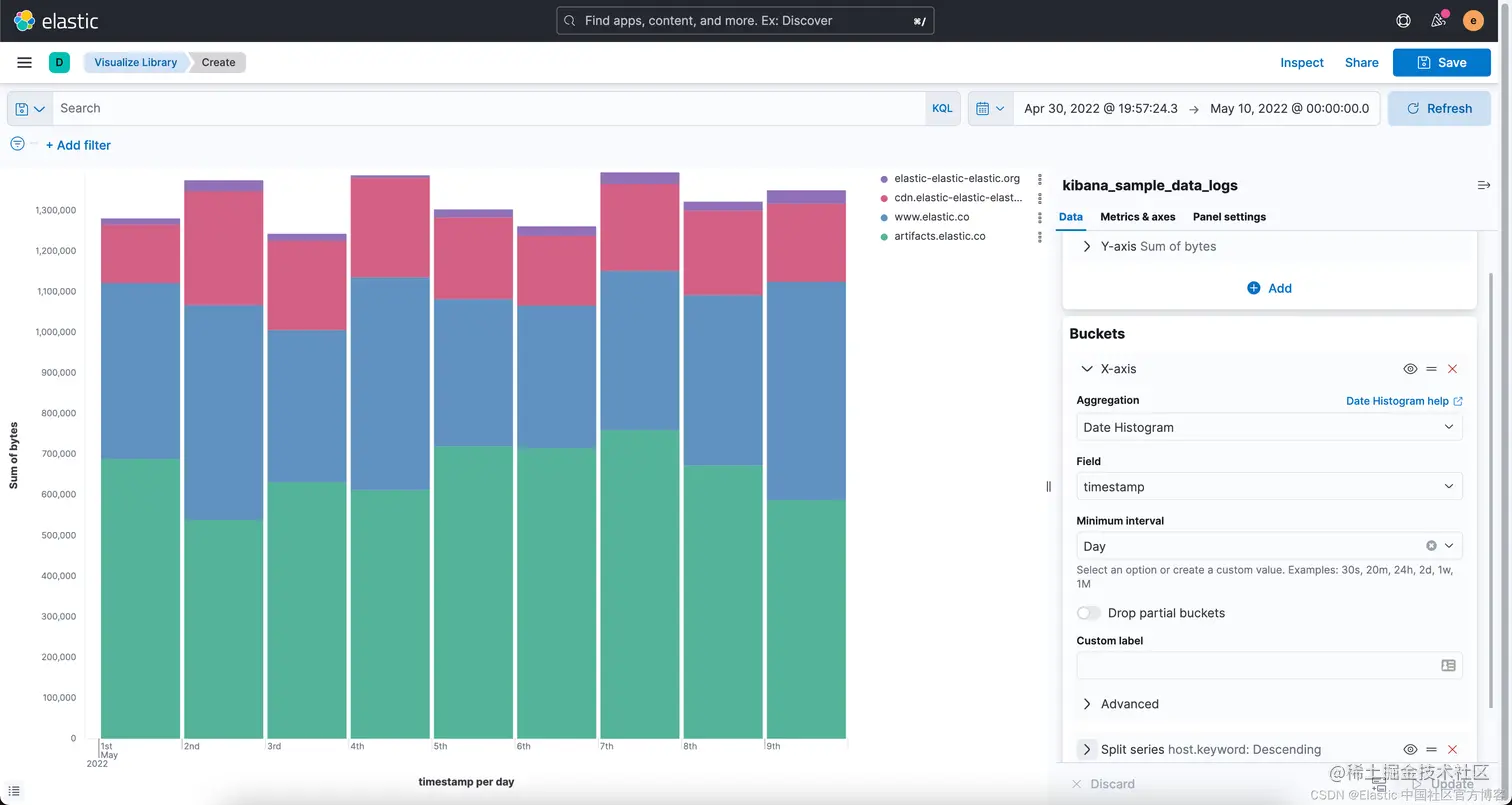 我们知道在使用 Elasticsearch 进行聚合时,我们经常会使用 date histogram 来进行聚合,并针对其中的一些 term 进行分类,比如: