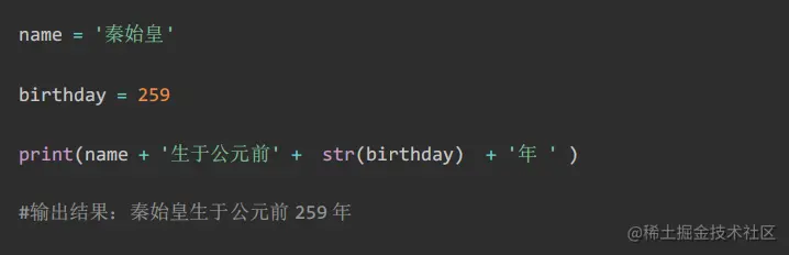 当我们想要 print('秦始皇生于公元前' + 259 + '年 ' )时,我们发现出现了一下错误