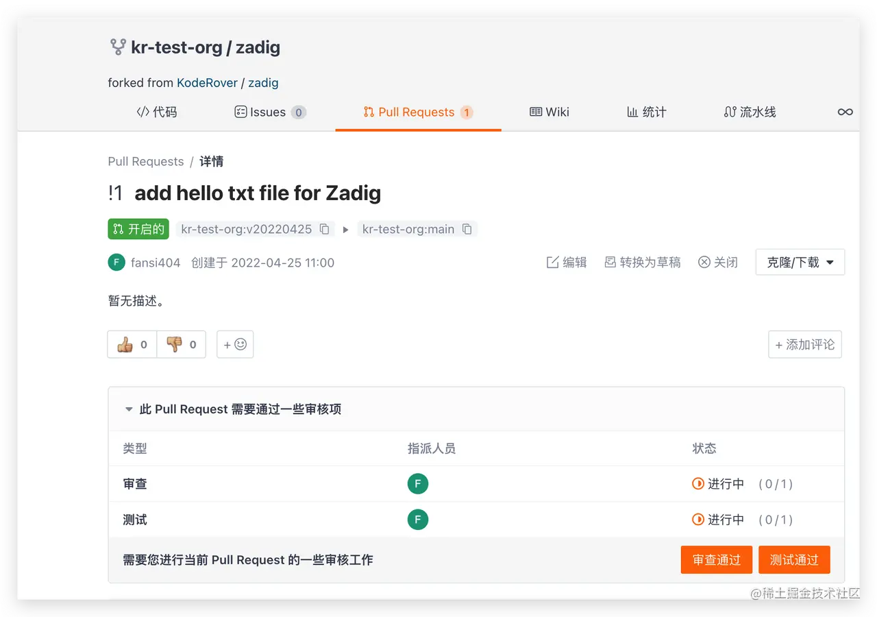 - 以 Pull Request 事件为例说明,提交 Gitee PR 修改源代码