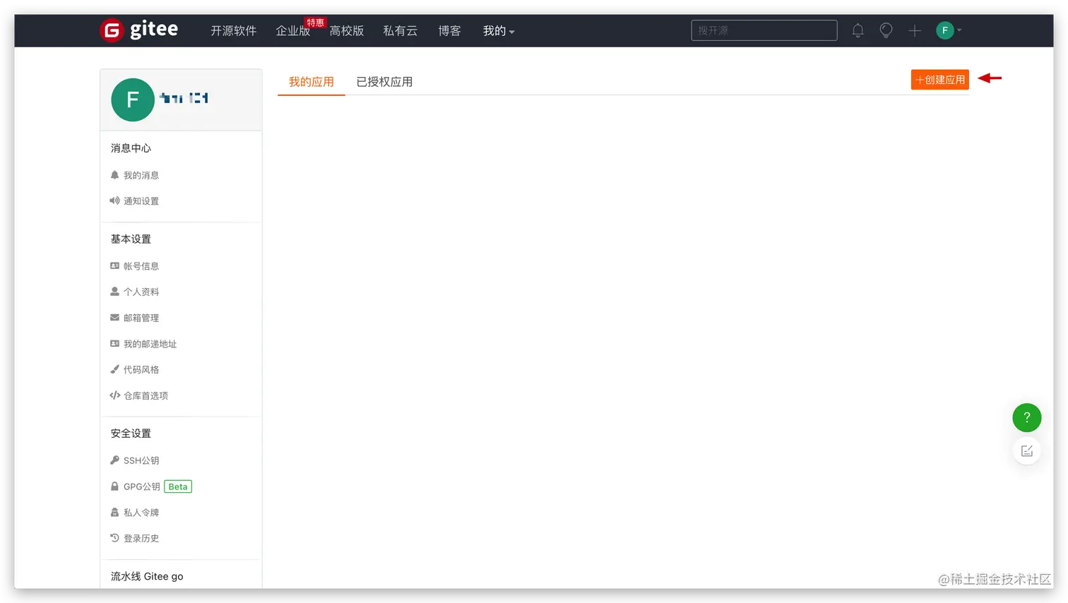 新建 Gitee 第三方应用