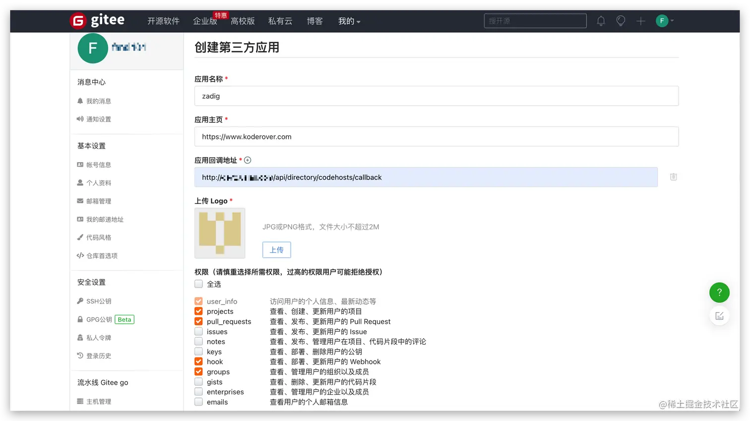 配置 Gitee 第三方应用