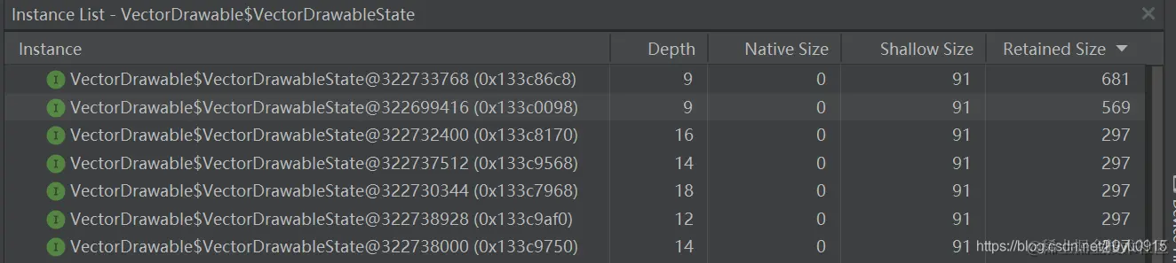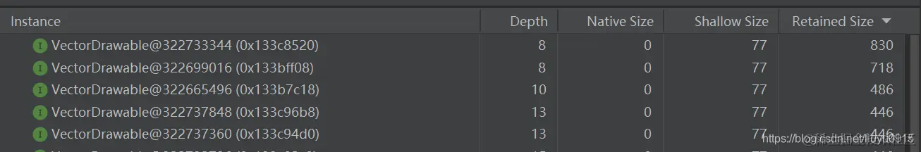 使用几张矢量图,VectorDrawable对象占用内存如下,都不超过1KB。