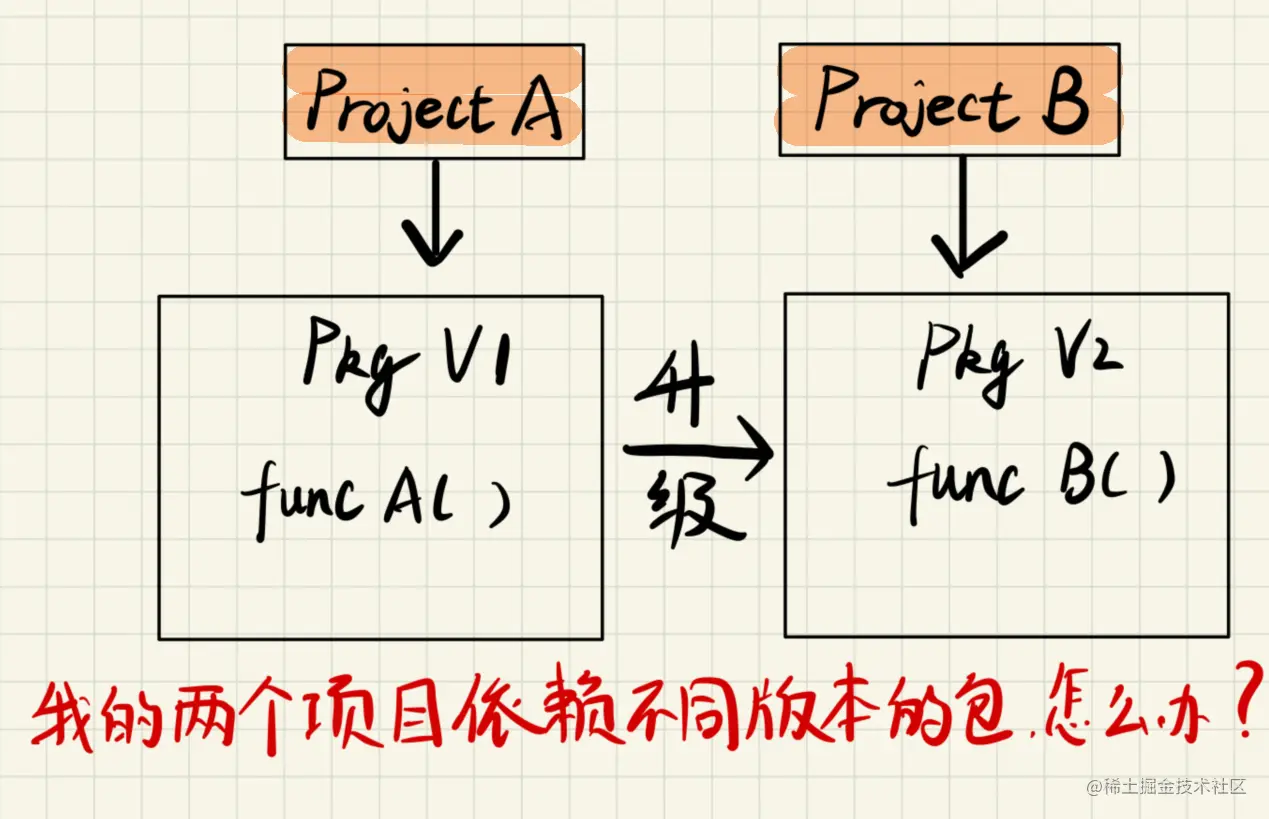 Go Vendor依然存在一些弊端——同一个项目中的package可能依赖于不同版本的包,这也会产生冲突。