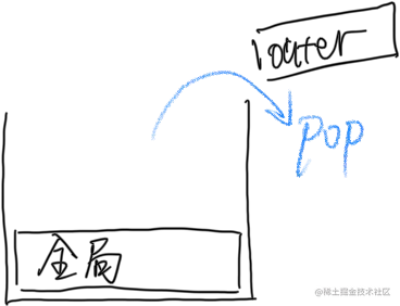 - outer函数再返回值。outer函数执行完毕,第二个栈帧被弹出栈
