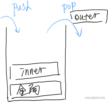 - 执行到inner函数,inner函数的上下文被push到栈中