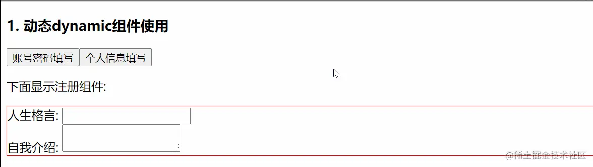 需求: 完成一个注册功能页面, 2个按钮切换, 额外封装两个组件:一个填写注册信息, 一个填写用户简介信息