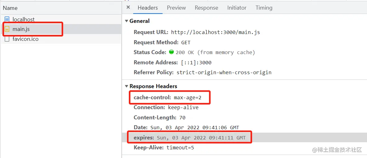紧接着第二次访问main.js,由于还在有效期内,所以直接从缓存中取。