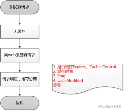 - 浏览器在请求某一资源时,会先获取该资源缓存的header信息,判断是否命中强缓存(cache-control和expires信息),若命中直接从缓存中获取资源信息,包括缓存header信息;本次请求根本就不会与服务器进行通信。