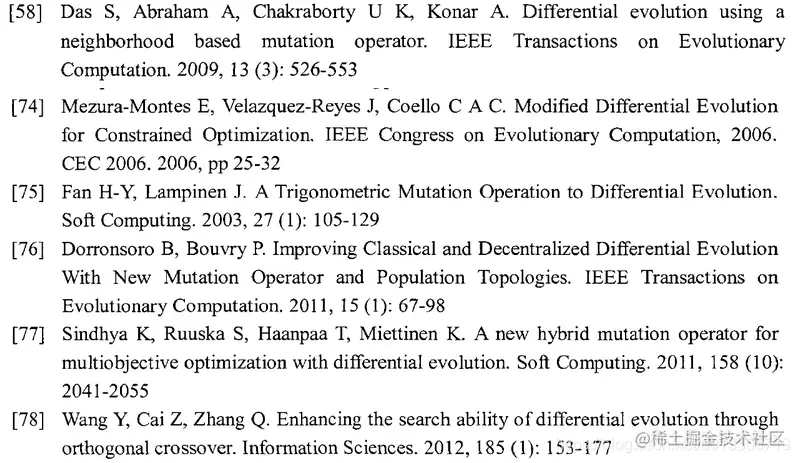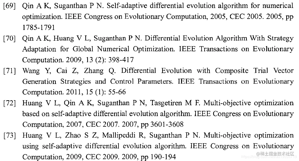 - SaDE[69], TEVC_SaDE[70], CoDE[71], MOSaDE[72],OW-MOSaDE[73]