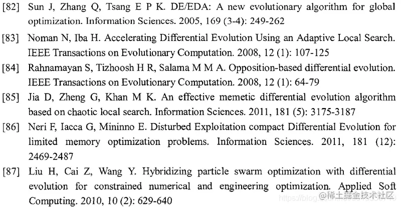 DE/EDA[82], DEahcSPX [83],ODE [84],DECLS [85],DEcDE[86], PSO-DE[87]