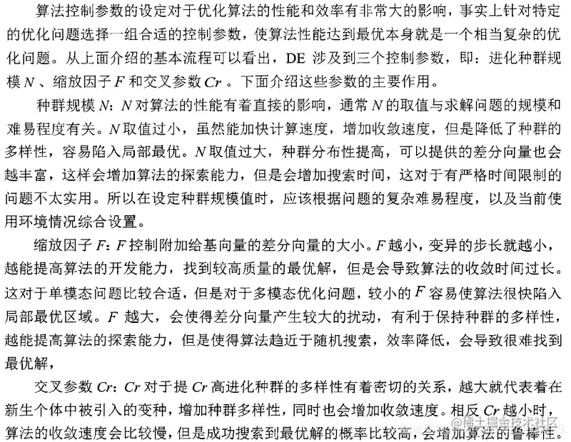 - DE可调控制参数种群规模,缩放因子及交叉参数比较少,因而简单的参数控制策略就能取得满意的优化效果。
