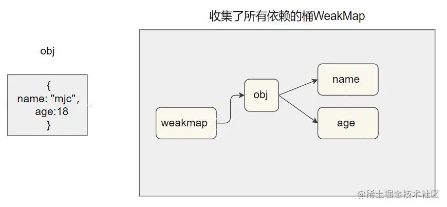 objProxy.name = "麦某人";//当name或者age改变时都会触发收集的副作用依赖