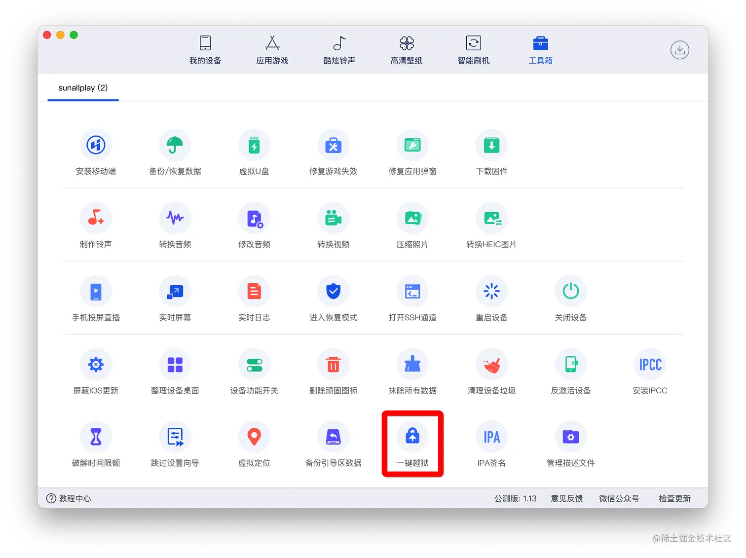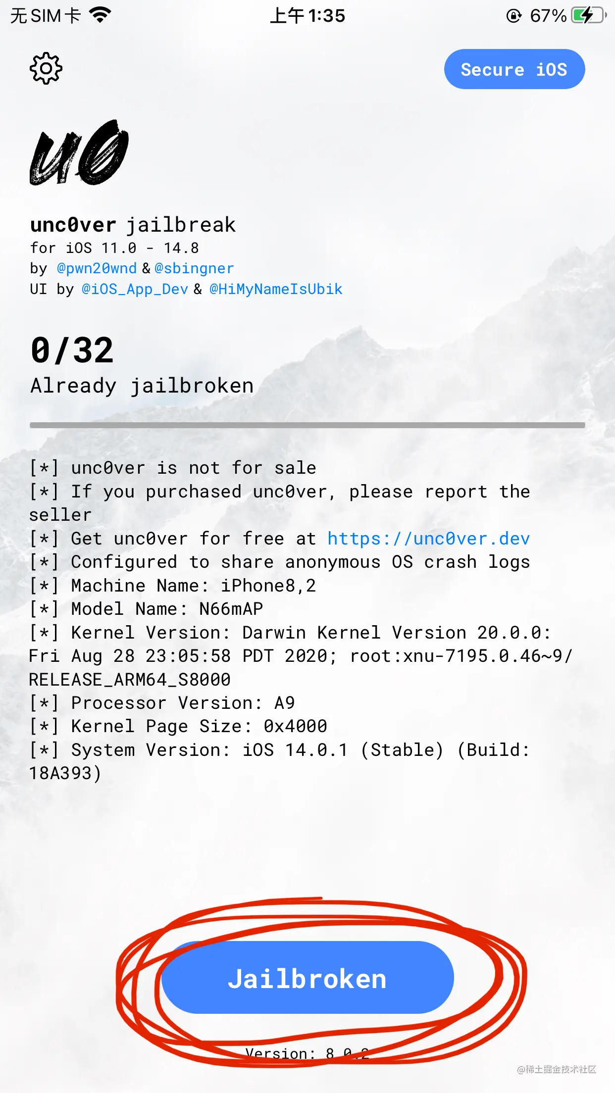 iOS越狱 + Revel clight 2022-05-09 350 阅读1分钟 什么是iOS Jailbreak(越狱)? 利用iOS系统的漏洞,获取iOS系统的最高权限(Root),解开之前的各种限制(合法行为) 步骤1:下载爱思助手,用数据线连接手机 步骤2:点击工具箱 - 一键越狱 步骤3:在手机上打开unc0ver,然后点击Jailbroken(如果卡住不动,重复步骤2) 完成后,手机会重启,标志着手机成功越狱,然后Cydia就可以打开了。 步骤4:在Cydia中下载Reveal Loader 打开要调试的app