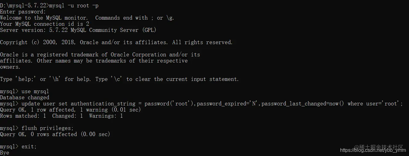 如果在第一步中使用mysqld --initialize-insecure命令,安装成功后,mysql的root账户密码为空,现在可以按照如下所示,进行修改密码: