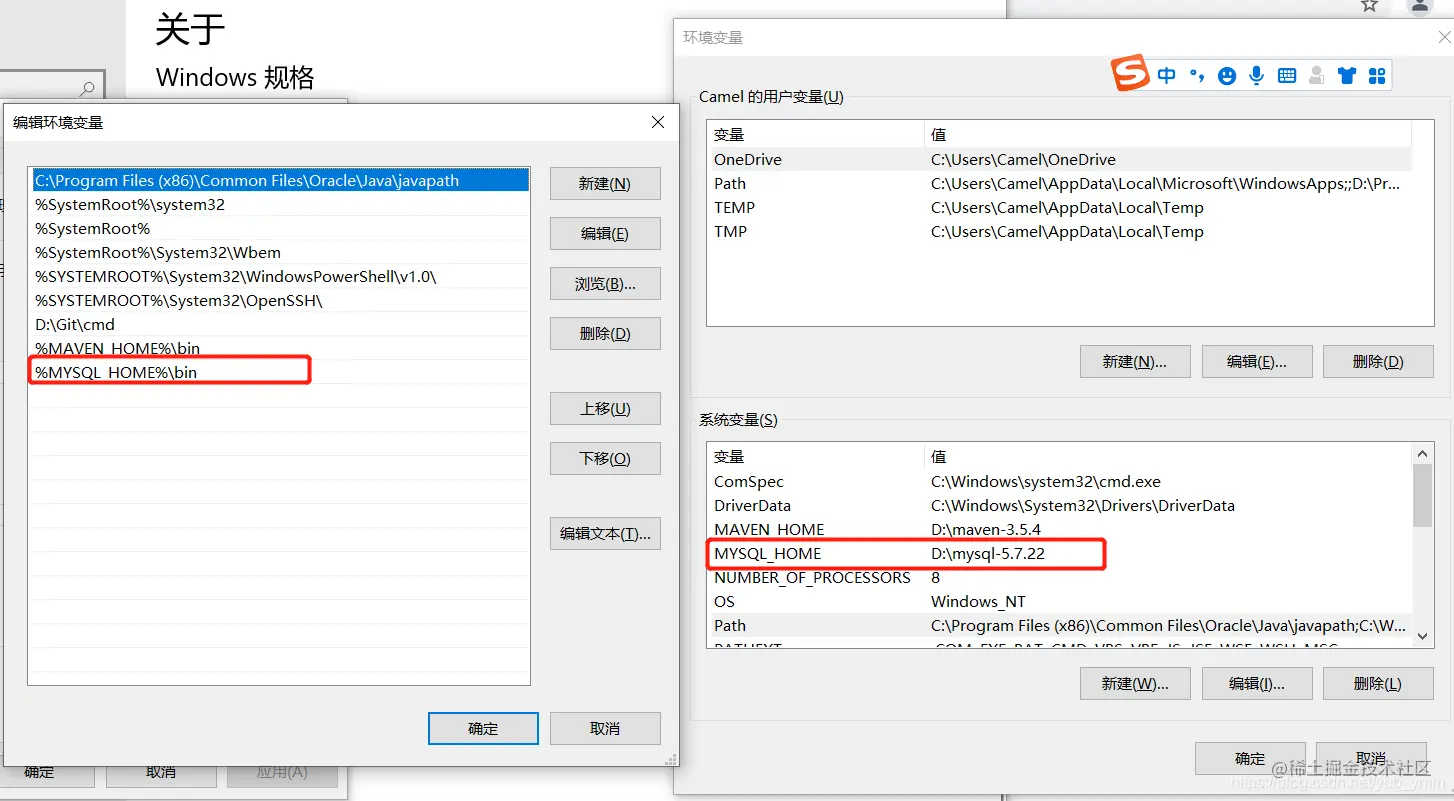 在变量值中添加变量值:%MYSQL_HOME%\bin
