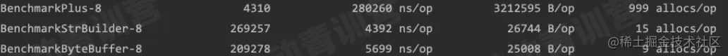 - 使用+拼接性能最差, strings.Builder, bytes.Buffer相近,strings.Builder更快
