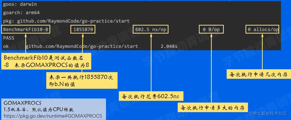 - Go语言提供了支持基准性能测试的benchmark工具