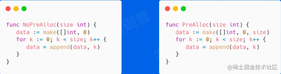 - 尽可能在使用make初始化切片的时候提供容量信息
