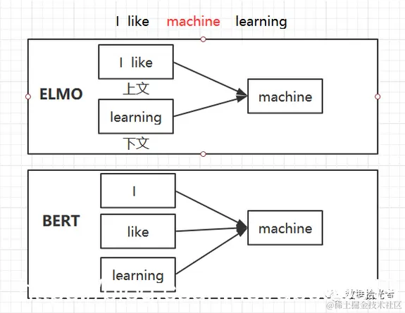 图 7 BERT和ELMO的上下文不同之处