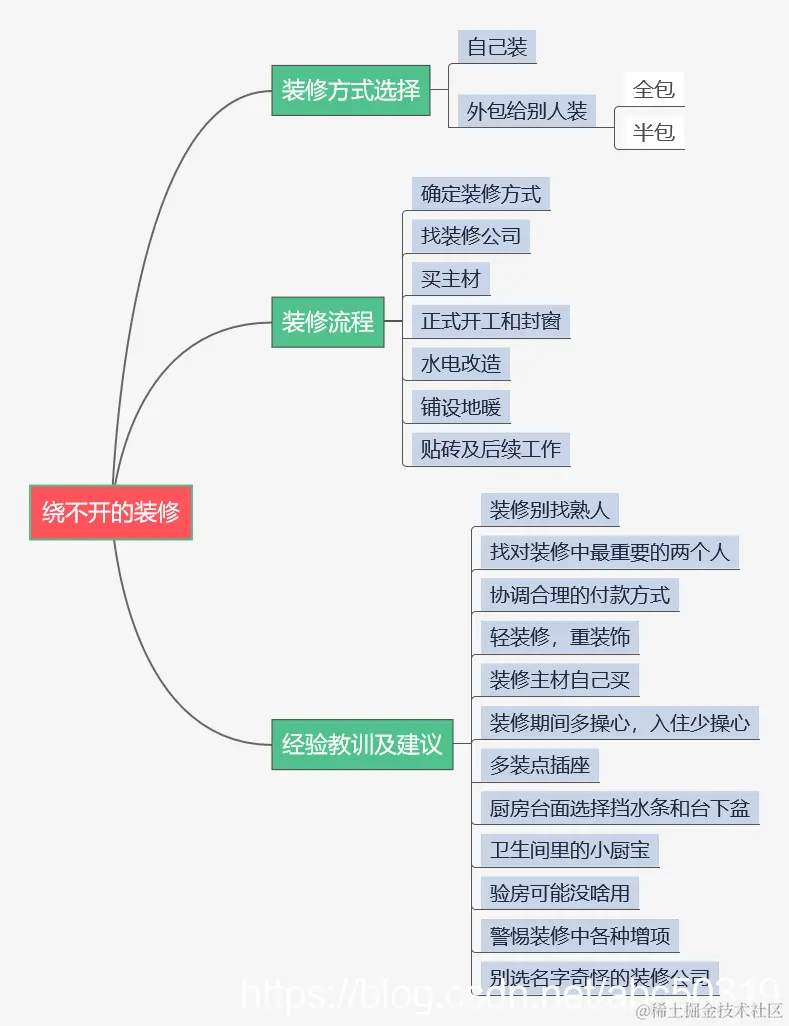 摘要:这是总会用到的系列第一篇:绕不开的装修。本篇主要分享下30岁老大叔亲身经历过的装修历程。现在想想其中的艰辛不比学车拿驾照少。本篇先是讲下装修主要的几种形式,然后讲下装修的整个流程,最后重点分享一些经验教训和建议。还没装修的小伙伴们可以借鉴下。祝大家都能构建一个温暖且实用的家。本篇适合那些对装修感兴趣,或者即使不感兴趣但是马上要面临装修大关的小伙伴。总有几点你会用的上。