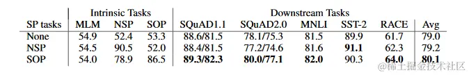 从图中可以看出NSP任务无法预测SOP类任务,但是SOP可以预测NSP任务。整体来看,SOP任务的模型效果也优于NSP任务。
