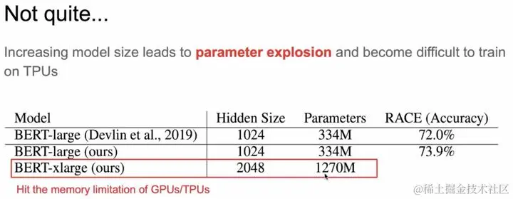 但是网络变深变宽带来一个显著的问题:参数爆炸。这里看下不同规模参数的BERT模型参数量的变“胖”之路: